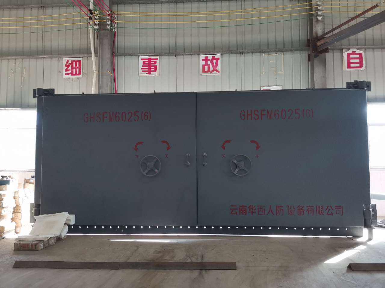公司主要生产的产品有:钢结构单、双扇防护密闭门、密闭门类;地铁和隧道正线防护密闭门;钢筋混凝土单、双扇防护密闭门、密闭门类;钢结构和混凝土防爆波悬板活门、胶管活门、战时封堵板等防护产品;人防通风、给排水、电气设备安装;人防专业设备的安装。(战时水箱、通风方式控制系统、防爆按钮、防爆地漏等);人防专业防水工程,人防主体验收和人防竣工验收整改工程。本公司生产设备齐全,拥有雄厚的生产能力和技术水平,技术图纸由《中国人民解放军军事科学院国防工程研究院(原总参工程兵第四设计院)》提供和《中国人民解放军陆军工程大学(前中国人民解放军理工大学)国防工程学院》为技术支持团队,并严格按照国家标准、云南省人防质量监督站的要求生产。